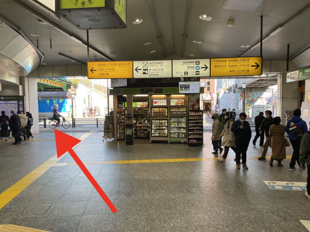 JR高田馬場駅・西武新宿線の早稲田口・東西線の1番出口を出て左側に進みます。